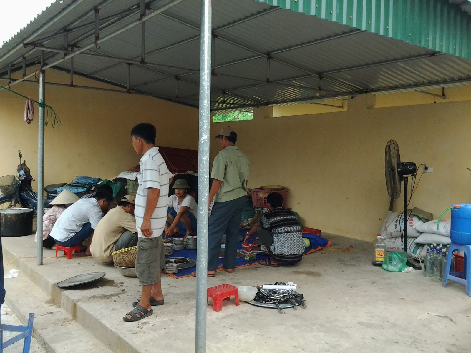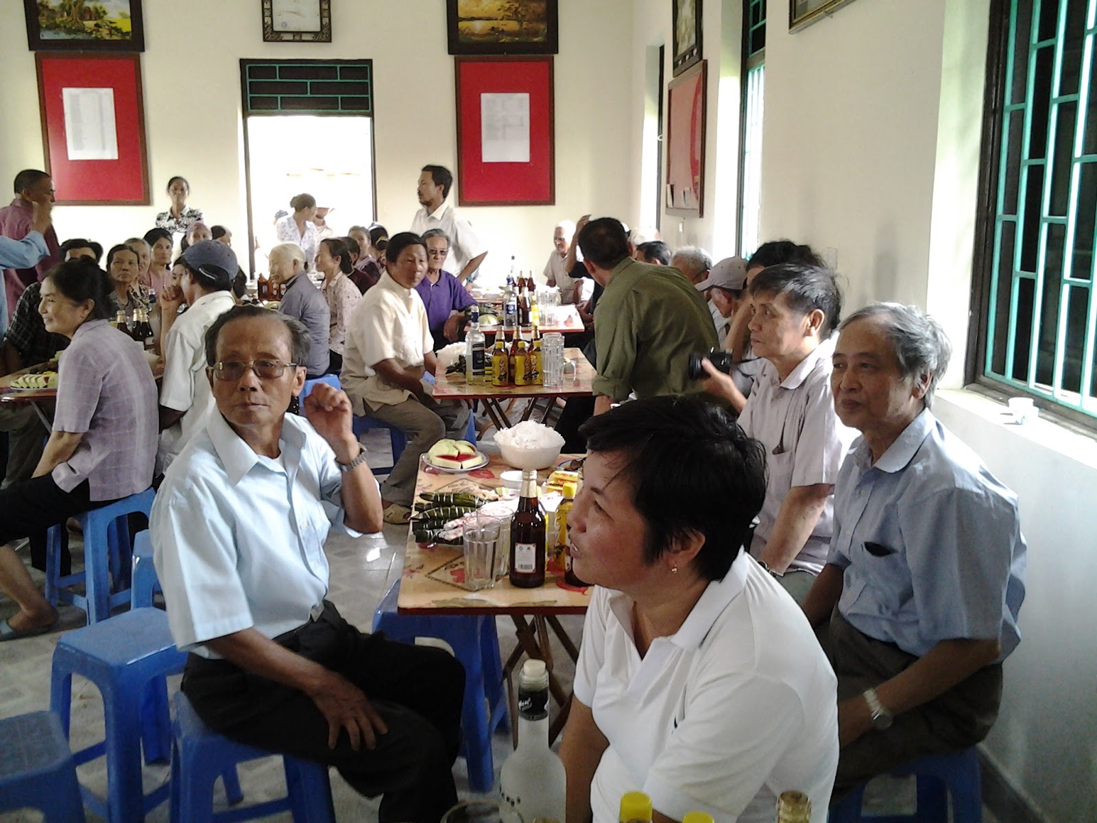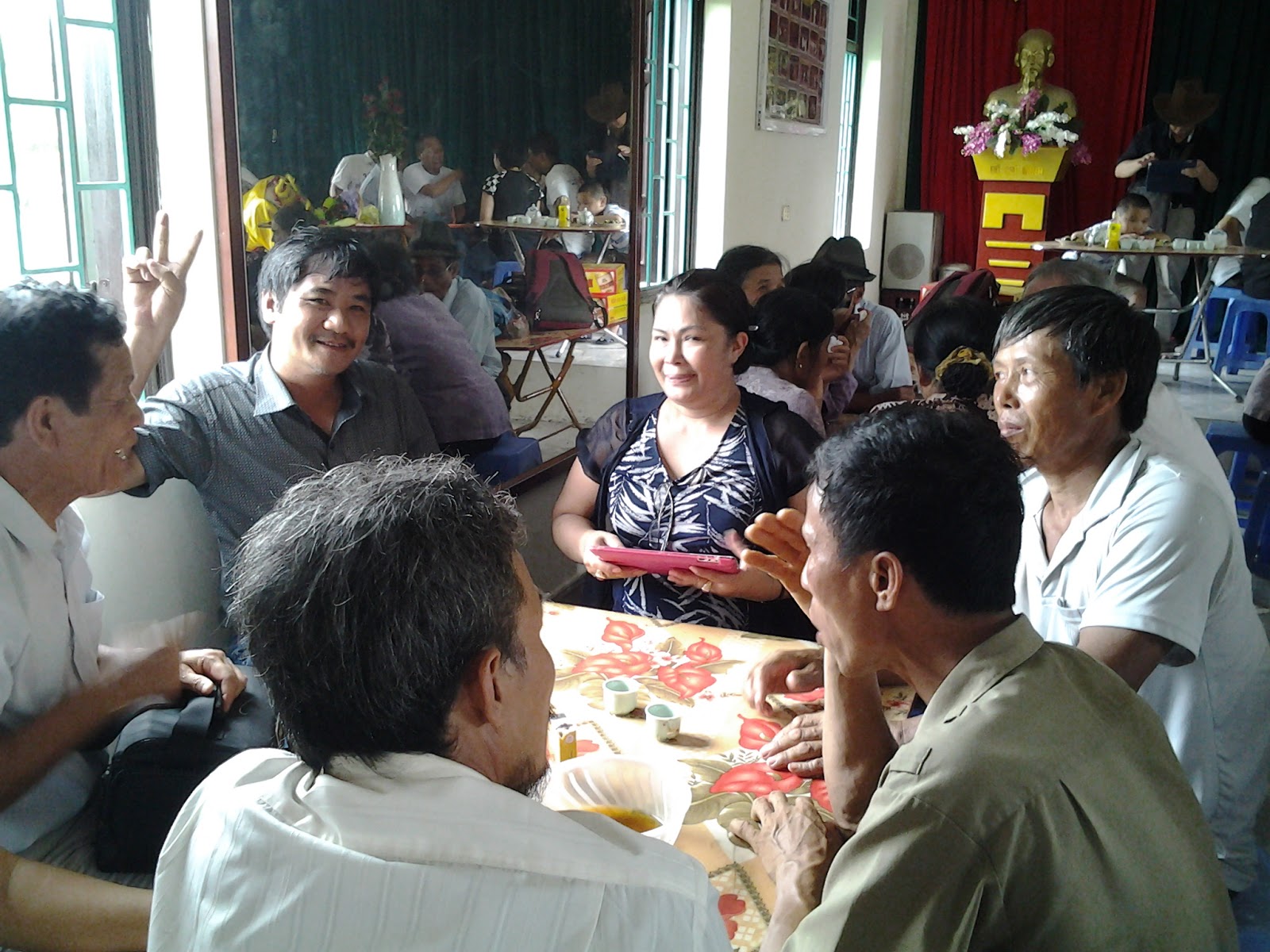 Bà con nông dân Xuân Quan mời chúng tôi sang vui hội lên đồng (tương tự tập quán cơm mới ở các địa phương khác khi vụ gặt vừa xong)